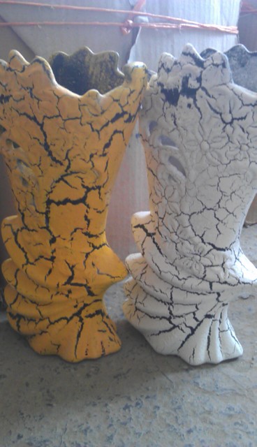 رنگ به کار برده شده رنگ روغنی است که با پیستوله یا قلم یا فرو کردن در رنگ به قلک های سفالی داده میشود.